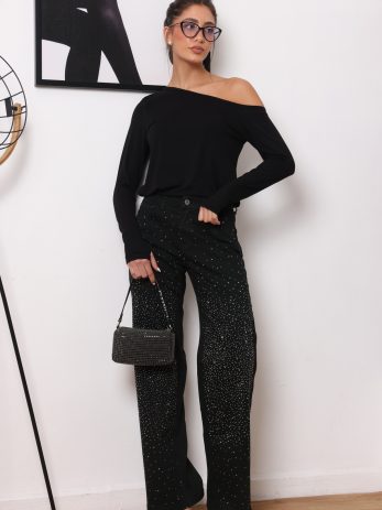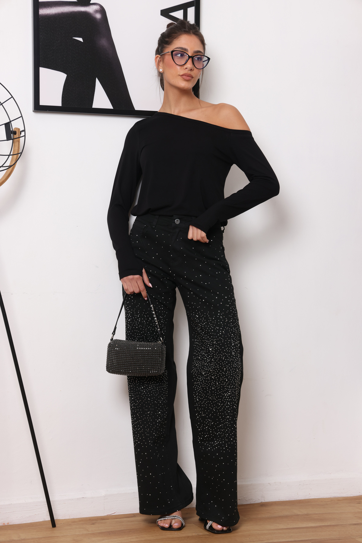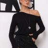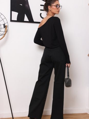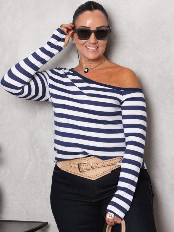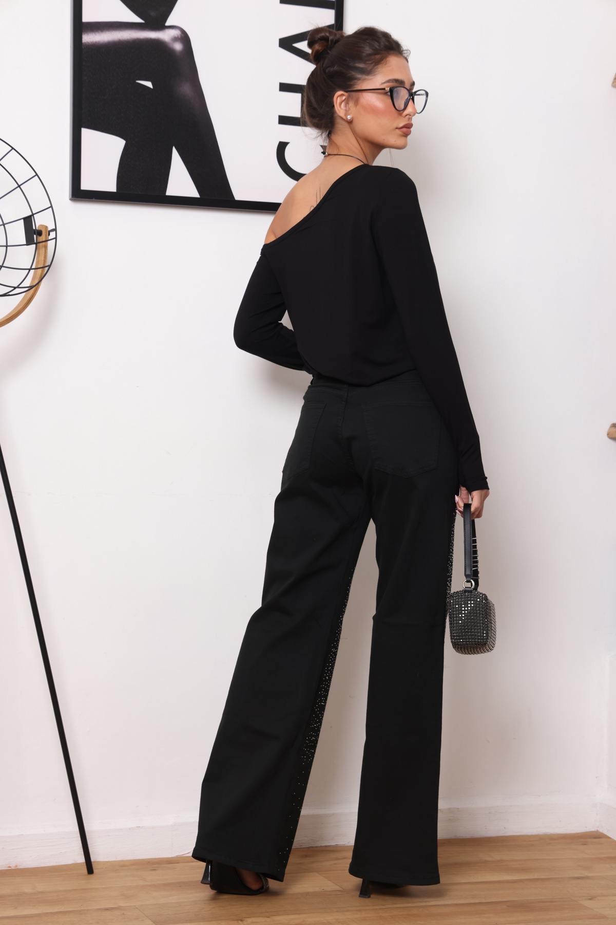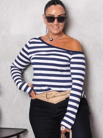 חולצת בייסיק בגזרה א-סימטרית חצי ריטה עם שרוולים ארוכים וכפפה לכנסת האצבע.