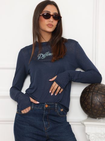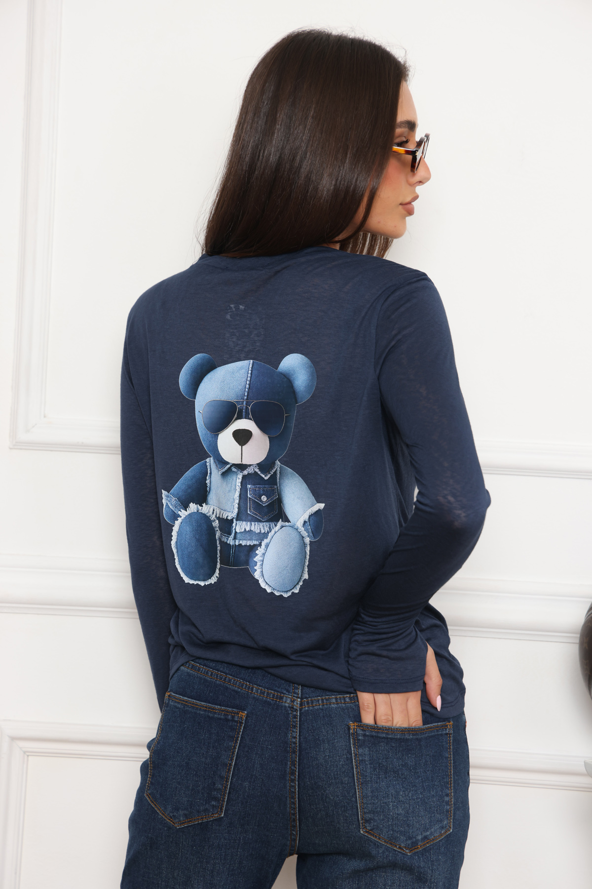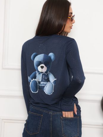 בייסיק ניקי בגזרה הקלאסית והעל זמנית שלנו, עם עיצוב טקסט מקדימה ודובי בגב . את החולצה שילבנו עם מכנסי ג'ינס מתרחב מבד דק – ניתן למצוא בקטגוריית מכנסיים