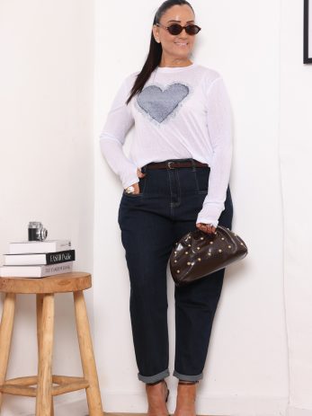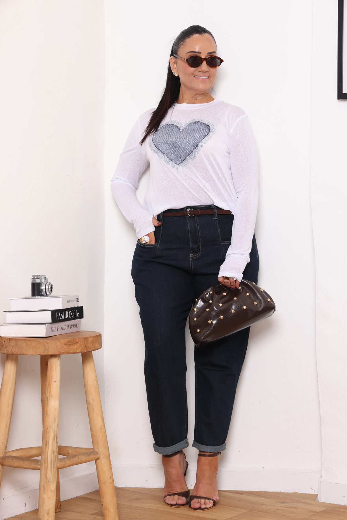 בייסיק ניקי בגזרה הקלאסית והעל זמנית שלנו, עם עיצוב לב ג'ינס מקדימה