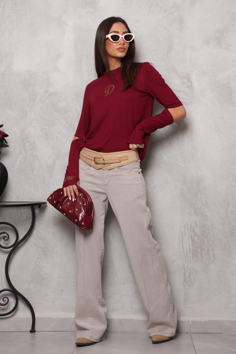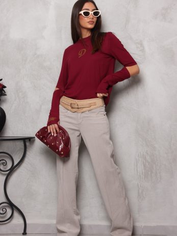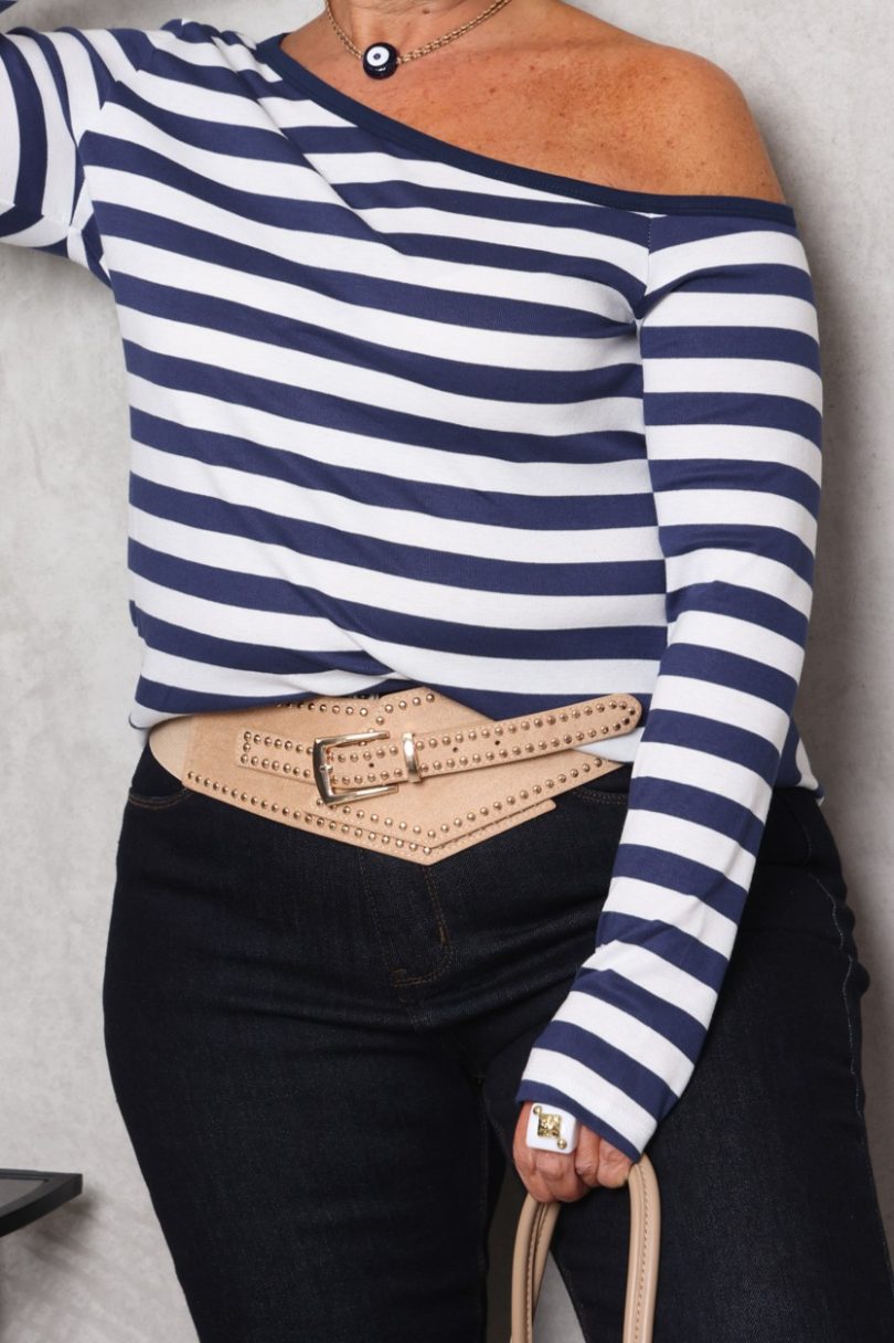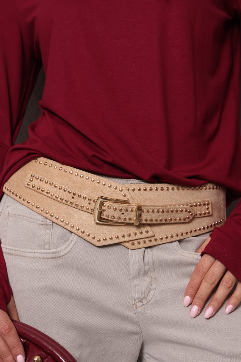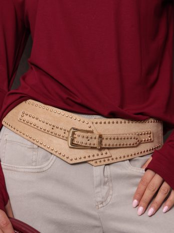 חגורת זמש חומה משולבת ניטים ואבזם סגירה מקדימה