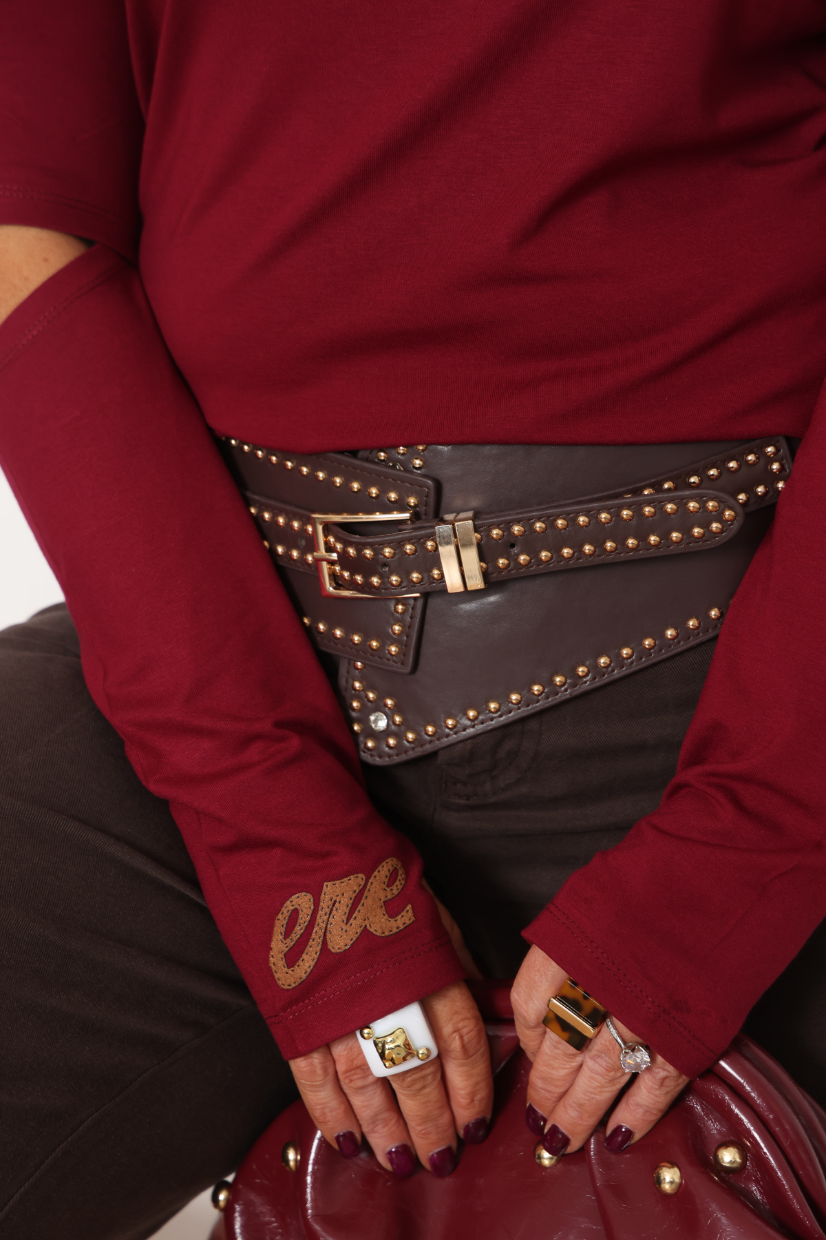 חגורת ניטים חום כהה