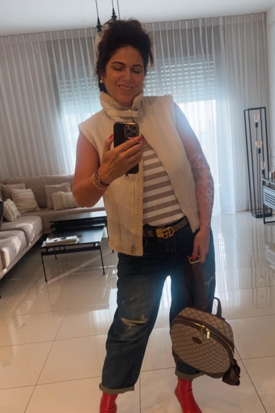 בטקסטורת פסים, הגופייה קיימת במידות 1-3 ומתאימה למידות 36-46