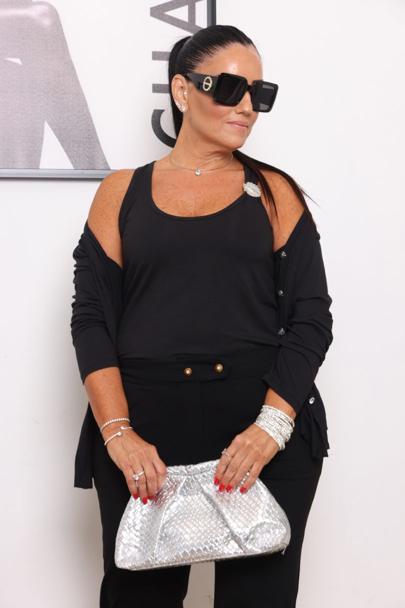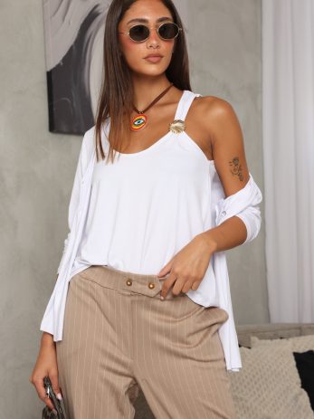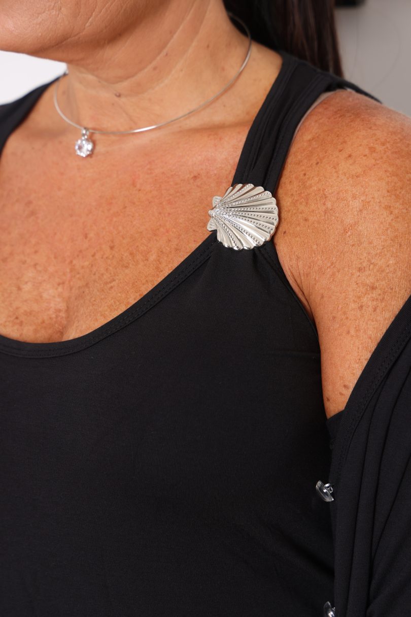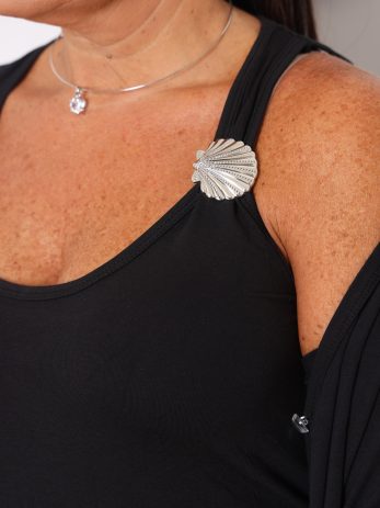 גופיית בייסיק מבד דק ונעים, משולבת עיטור צדף מוזהב או כסוף לבחירתך בכתפייה