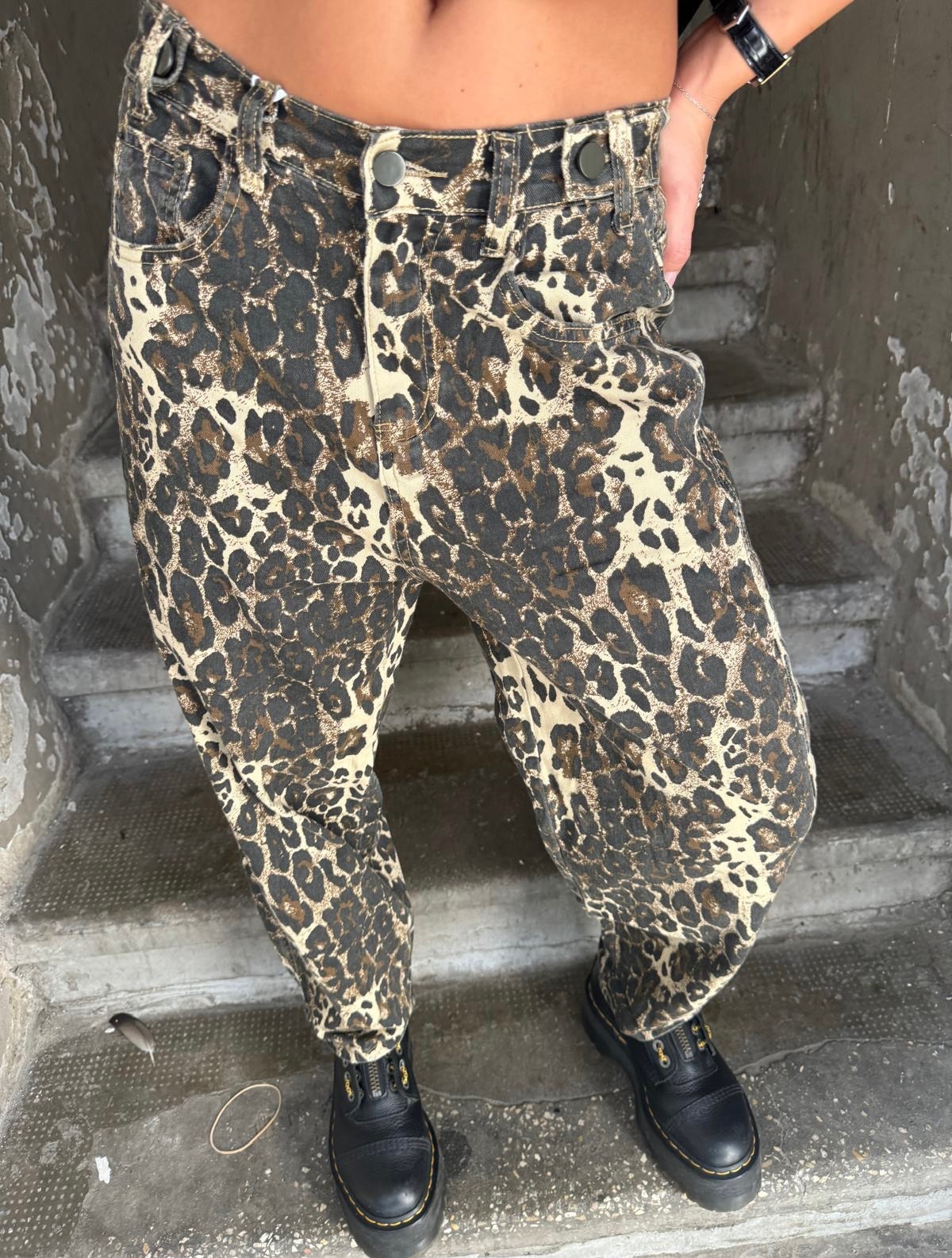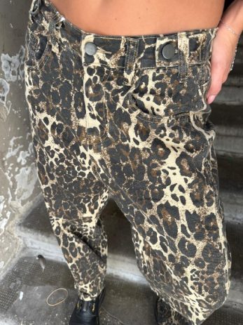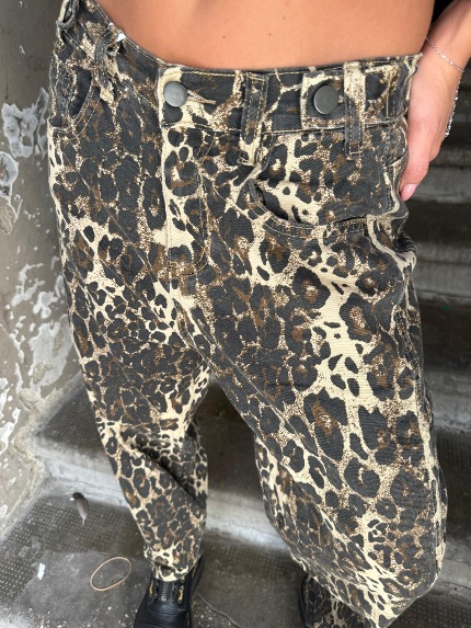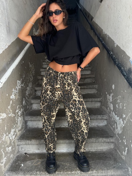 גינס באגי מנומר עם סגירת רוכסן וכפתור מקדימה וגומי מאחורה