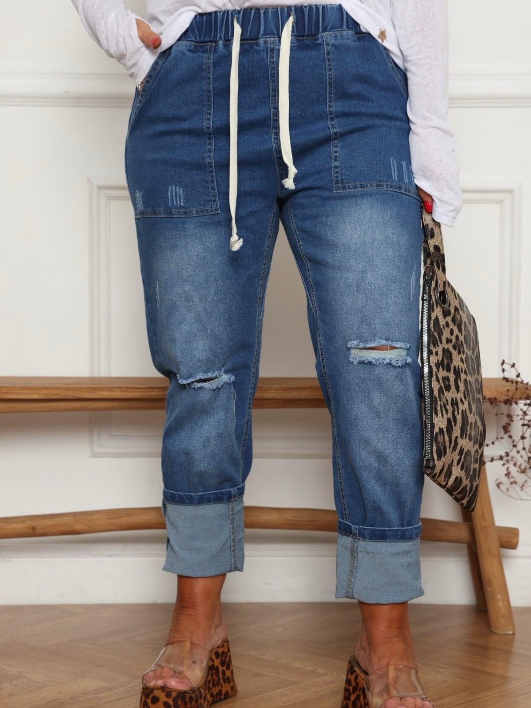 גינס גומי עם שרוך לקשירה, כיסים וסיומת קפל