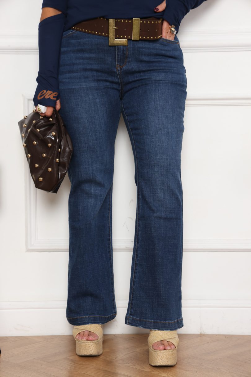 ג'ינס מחטב ומחמיא לגוף בגזרה מעט מתרחבת, לג'ינס שפשופים עדינים ללא קרעים. להשלמת הלוק שילבנו חולצת פתח במרפק