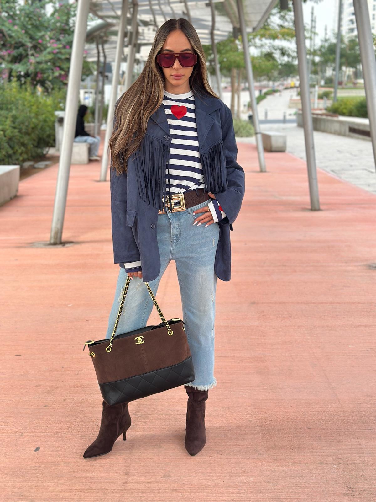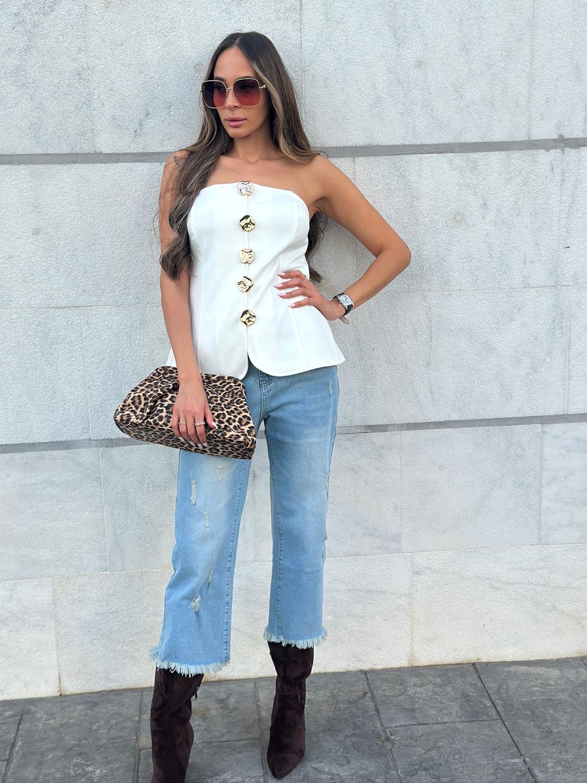 ג'ינס מחטב משופשף משולב קרעים עדינים מקדימה