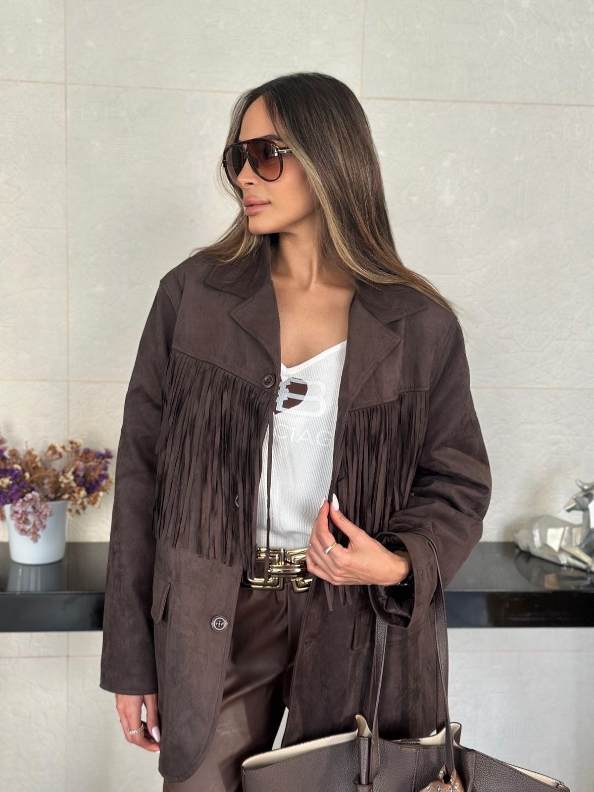 ג'קט זמש אלגנטי משולב פרנזים