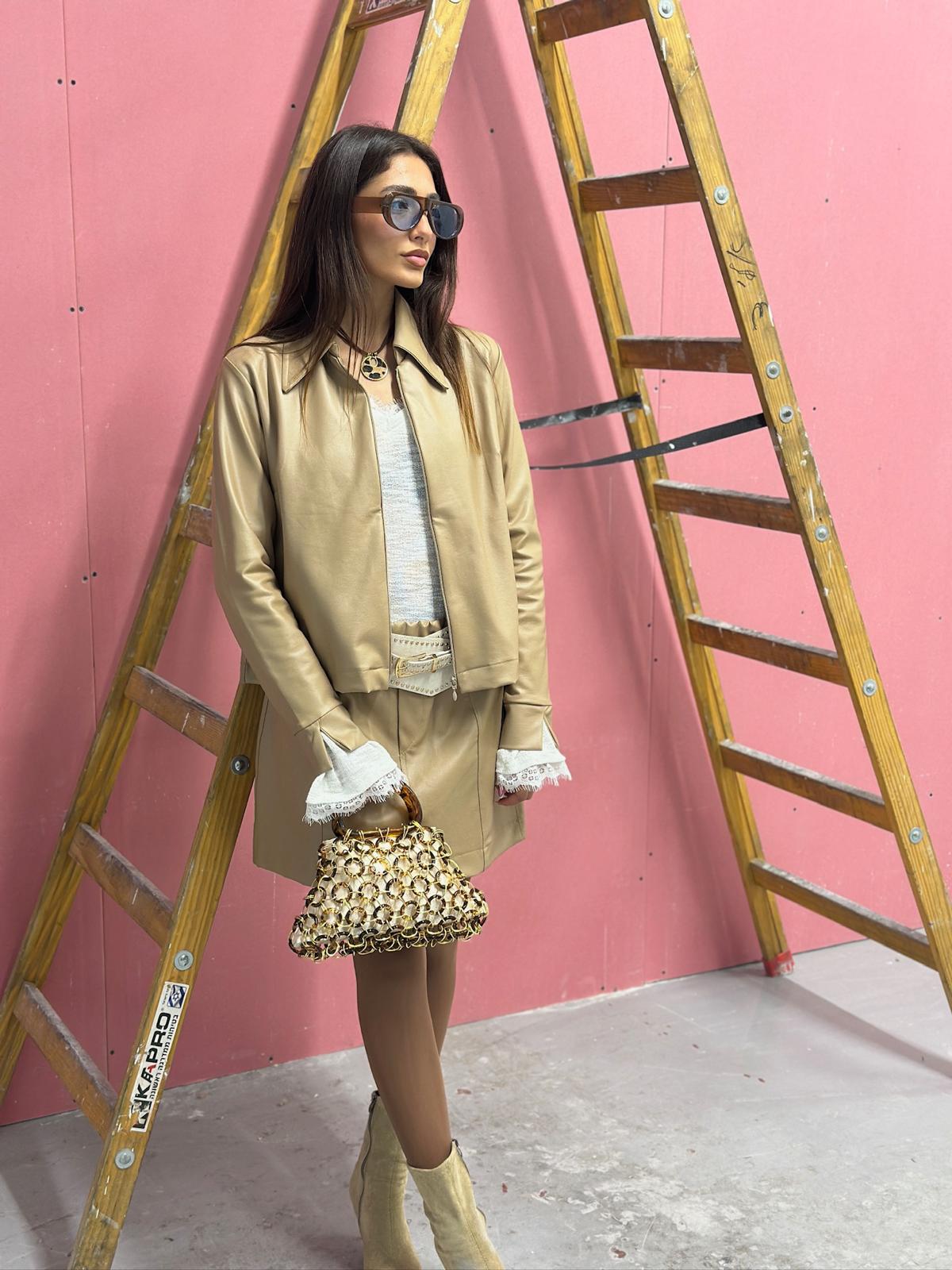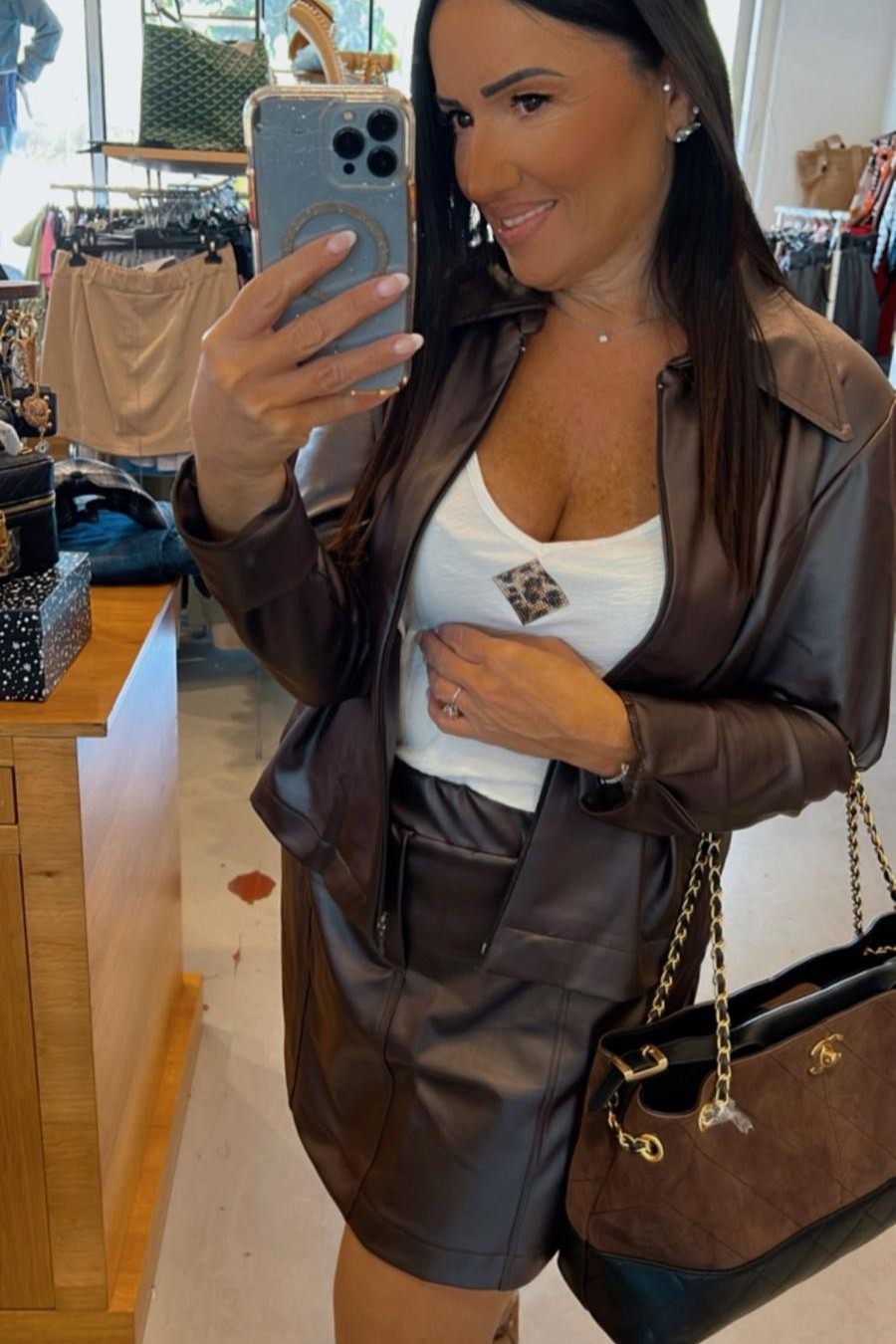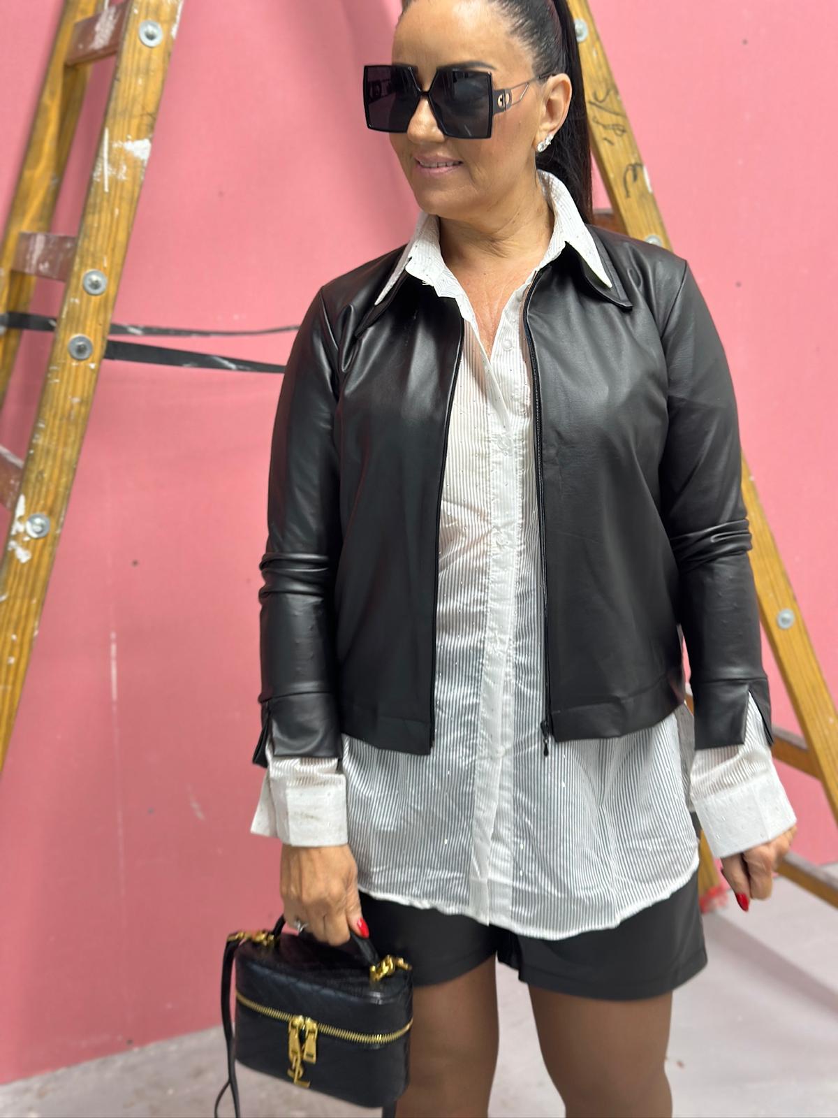 גקט דמוי עור בסגירת רוכסן מקדימה וצאוורון.