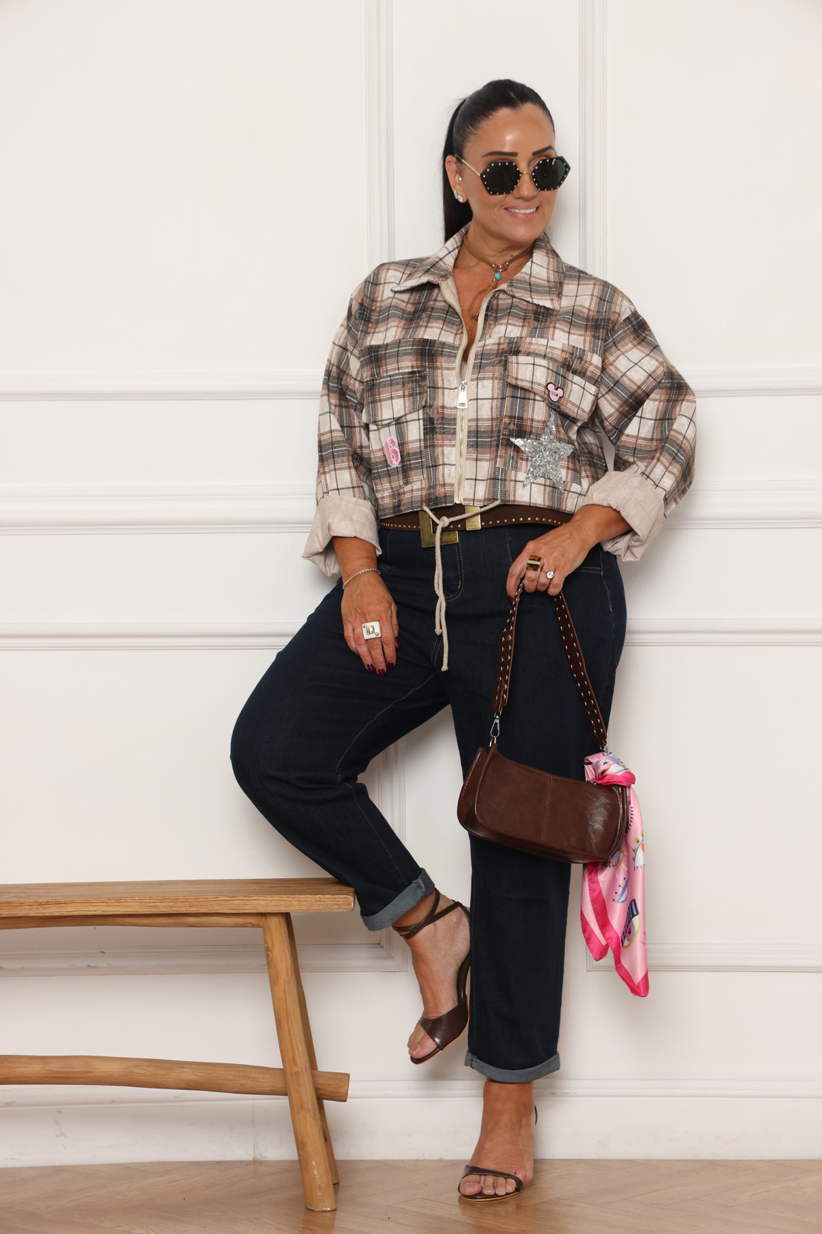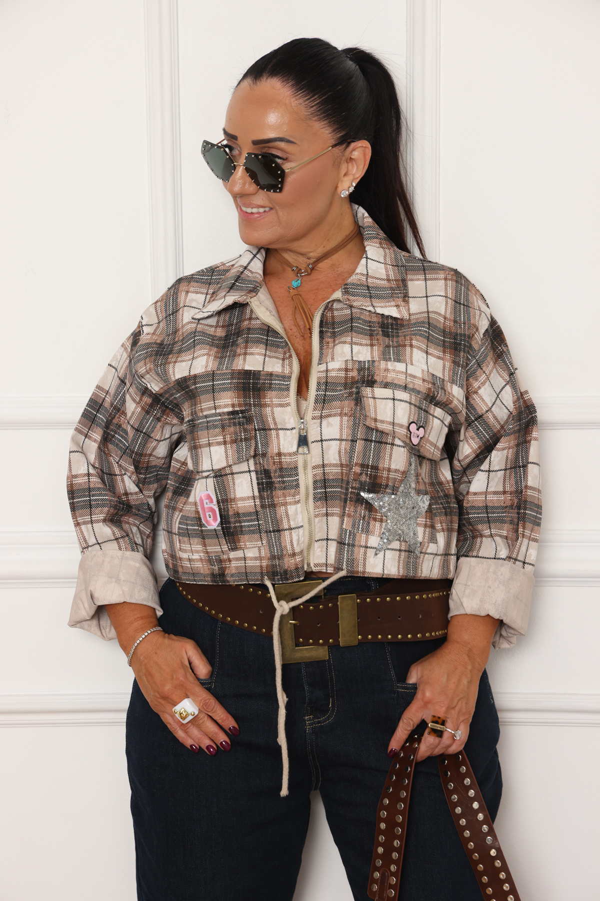 ג'קט מיוחד משולב טקסטורת משבצות
