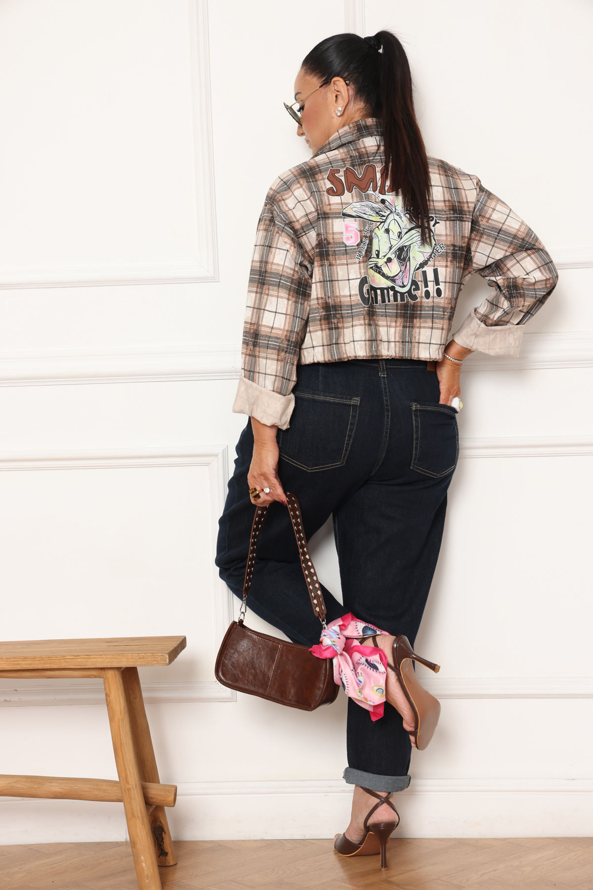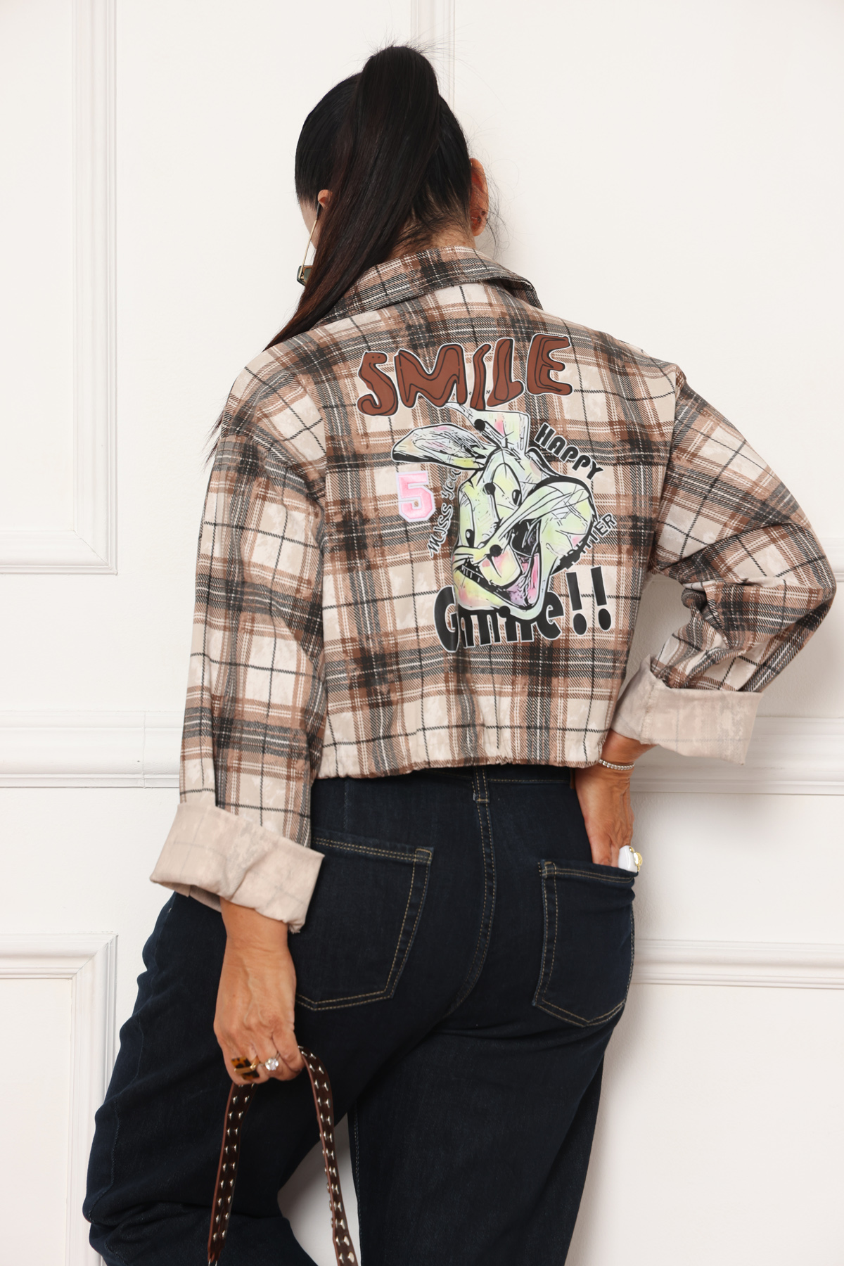 גקט משבצות גב מעוצב