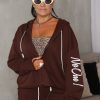 ג'קט קפוצ'ון בסגירת רוכסן ומכנסיים תואמים עם גומי במותן, לחליפה הדפסי טקסט לבנים. מידות נשים 36-46