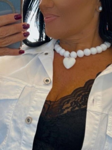 שרשרת מלאת נוכחות, עיגולים לבנים גדולים בשילוב תליון לב