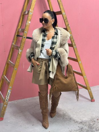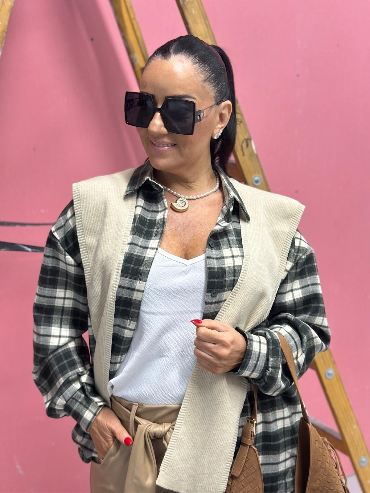 חולצת מכופתרת בטקסטורת משבצות משולבת צעיף