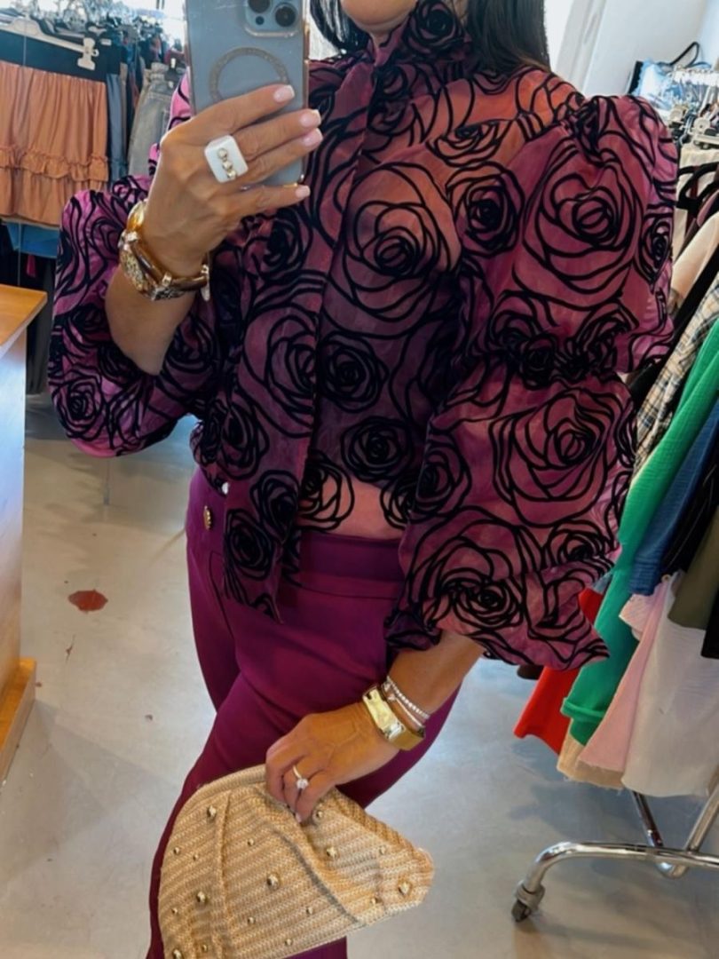 חולצה מכופתרת פרחונית מבד מעט שקוף