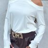 חולצה מבד ריב פסים בגזרה מיוחדת עם כפיים חשופות.