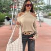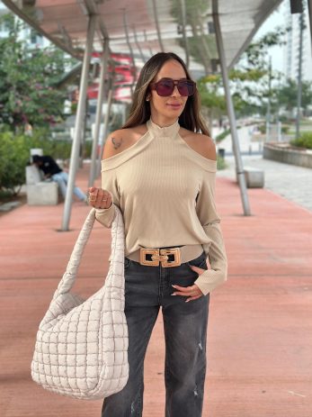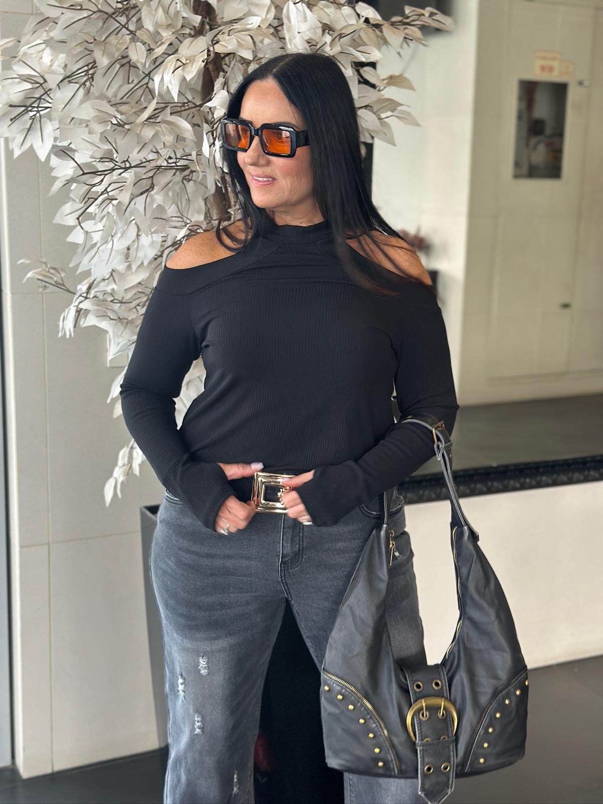 חולצה מבד ריב פסים בגזרה מיוחדת עם כפיים חשופות.