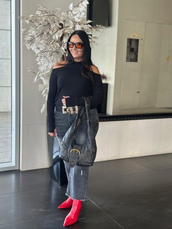 החולצה קיימת במידות נשים 36-46. כל המכנסיים והאקססוריז המופיעים בלוקים נמצאים באתר, צריכה עזרה? לחצי על אייקון הווטסאפ בתחתית העמוד