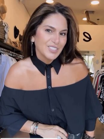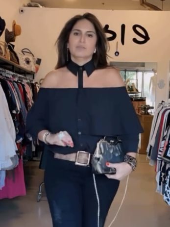 החולצה בגזרת ריטה עם שילוב מלמלה. החולצה קיימת במידות 1-2 ומתאימה למידות 36-44