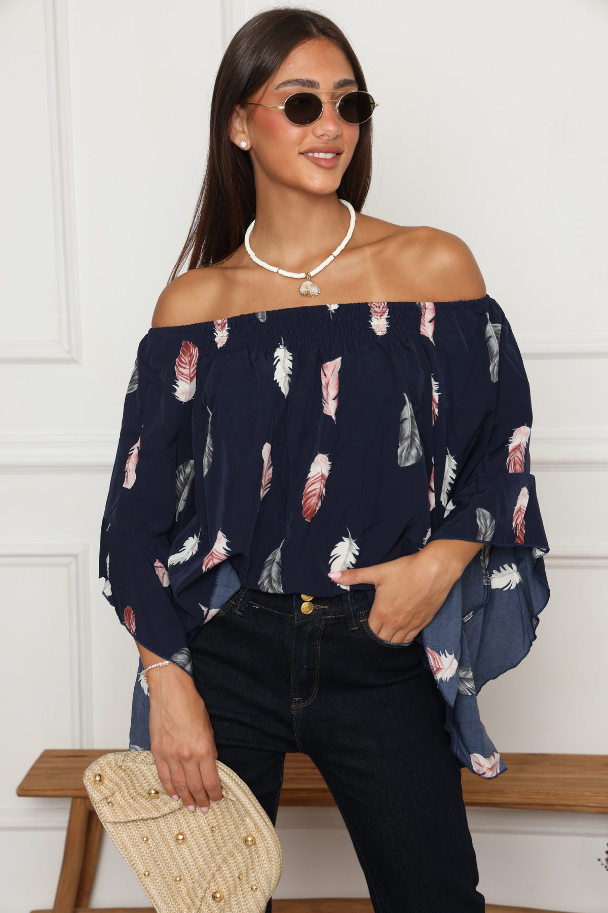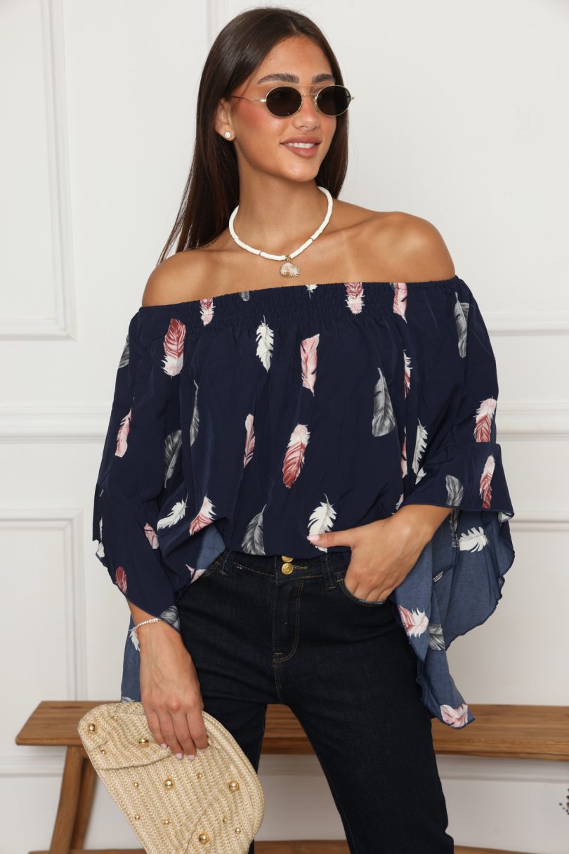 חולצה בגזרת ריטה עם שרוולים מתרחבים