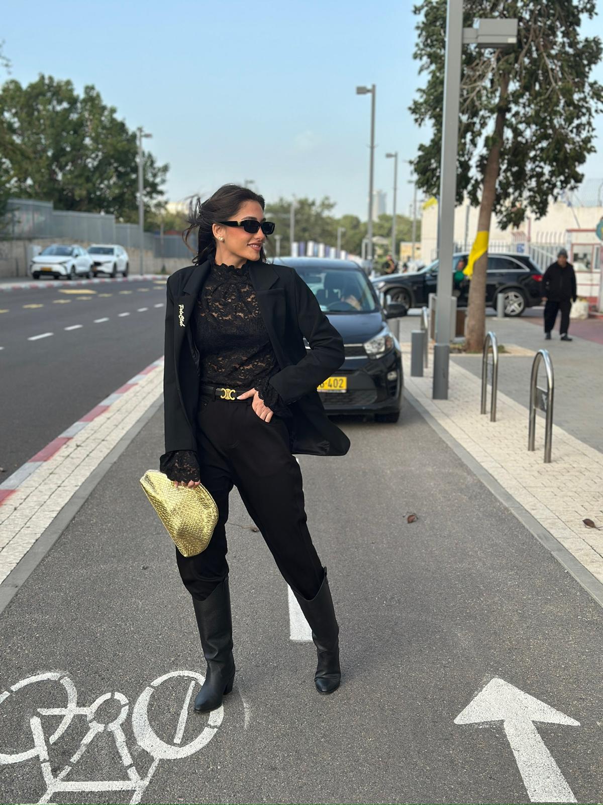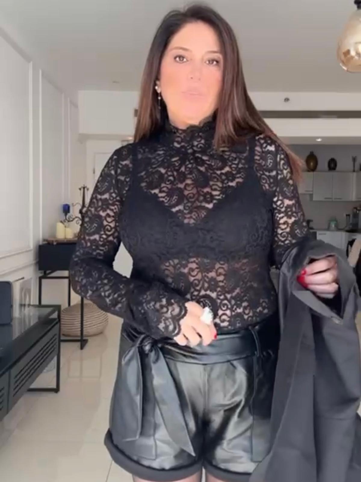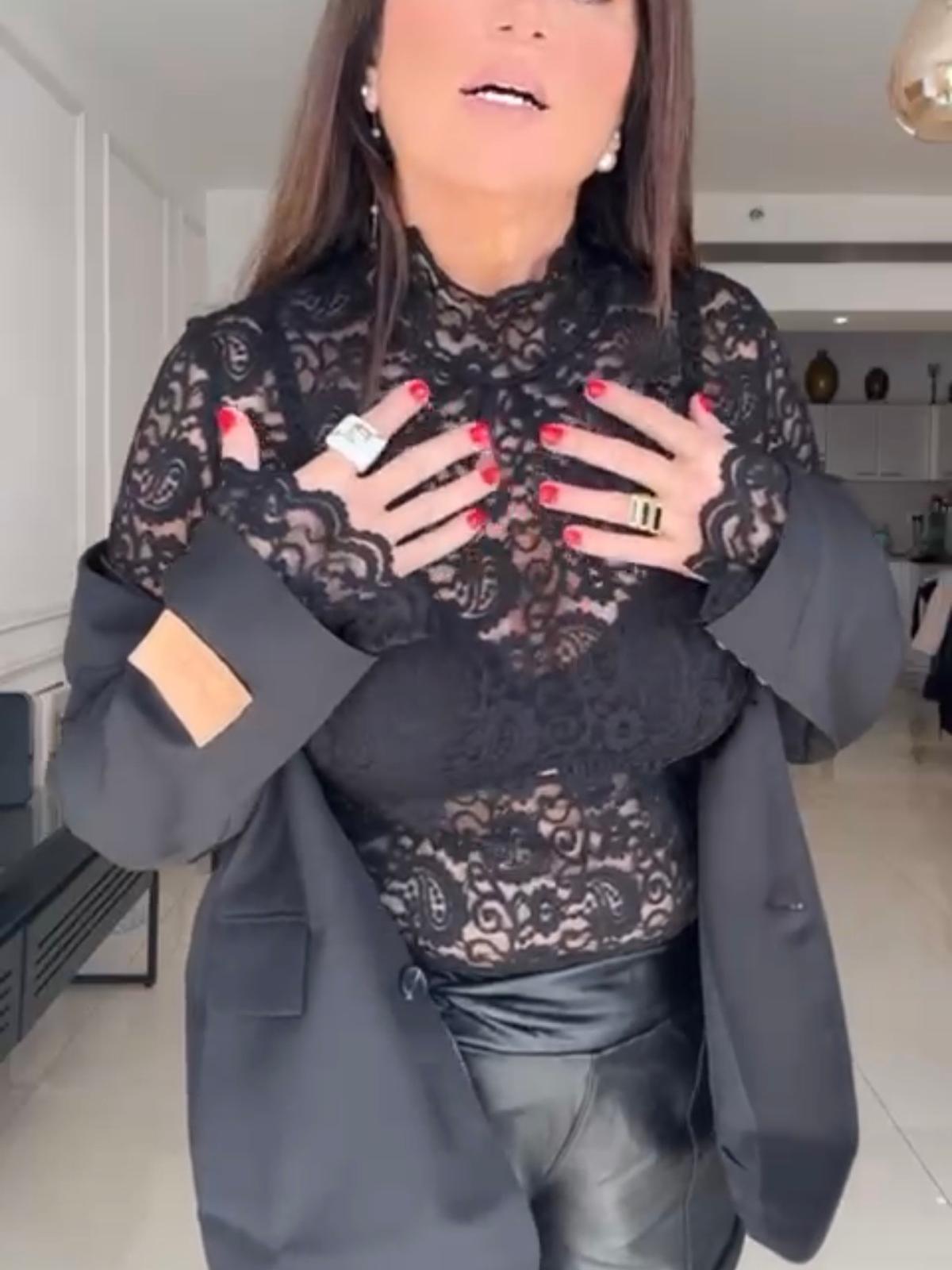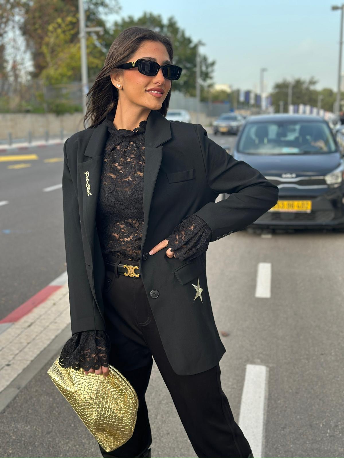חולצת תחרה שחורה