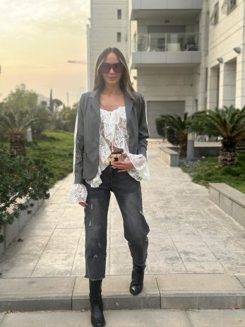 עם החולצה שילבנו ג'קט פס דמוי עור – ניתן למצוא בקטגורית ג'קטים