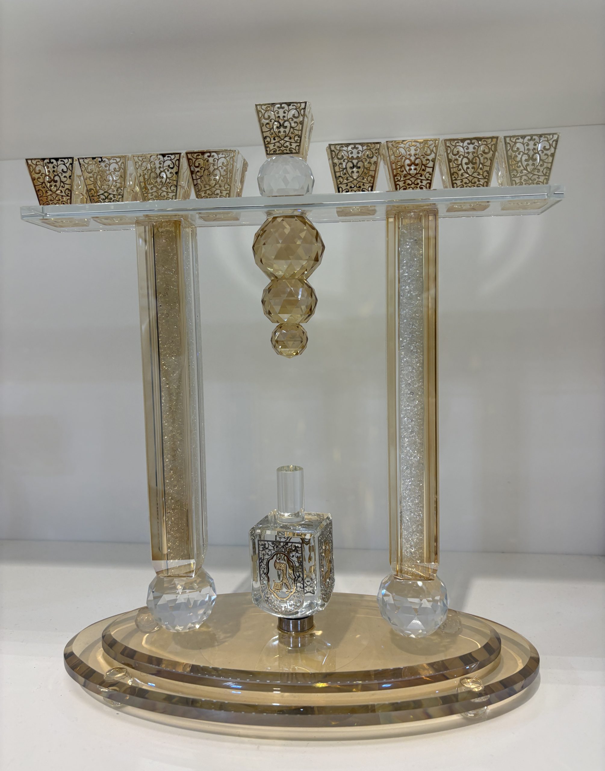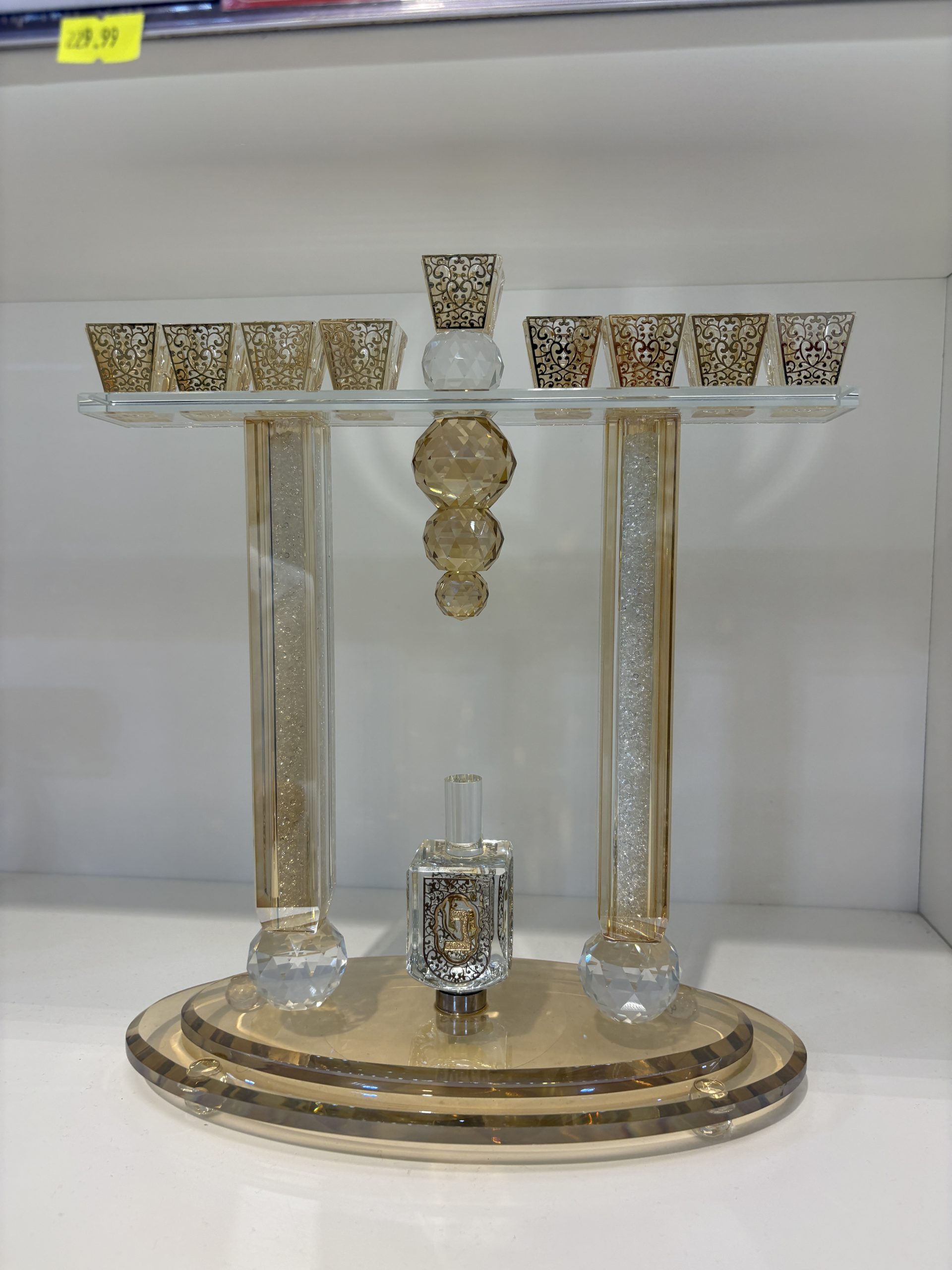 חנוכיה קריסטל מהודרת עם פלקטה ואבנים