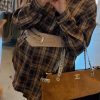 חולצה מכופתרת בגוונים חומים ובטקסטורת משבצות