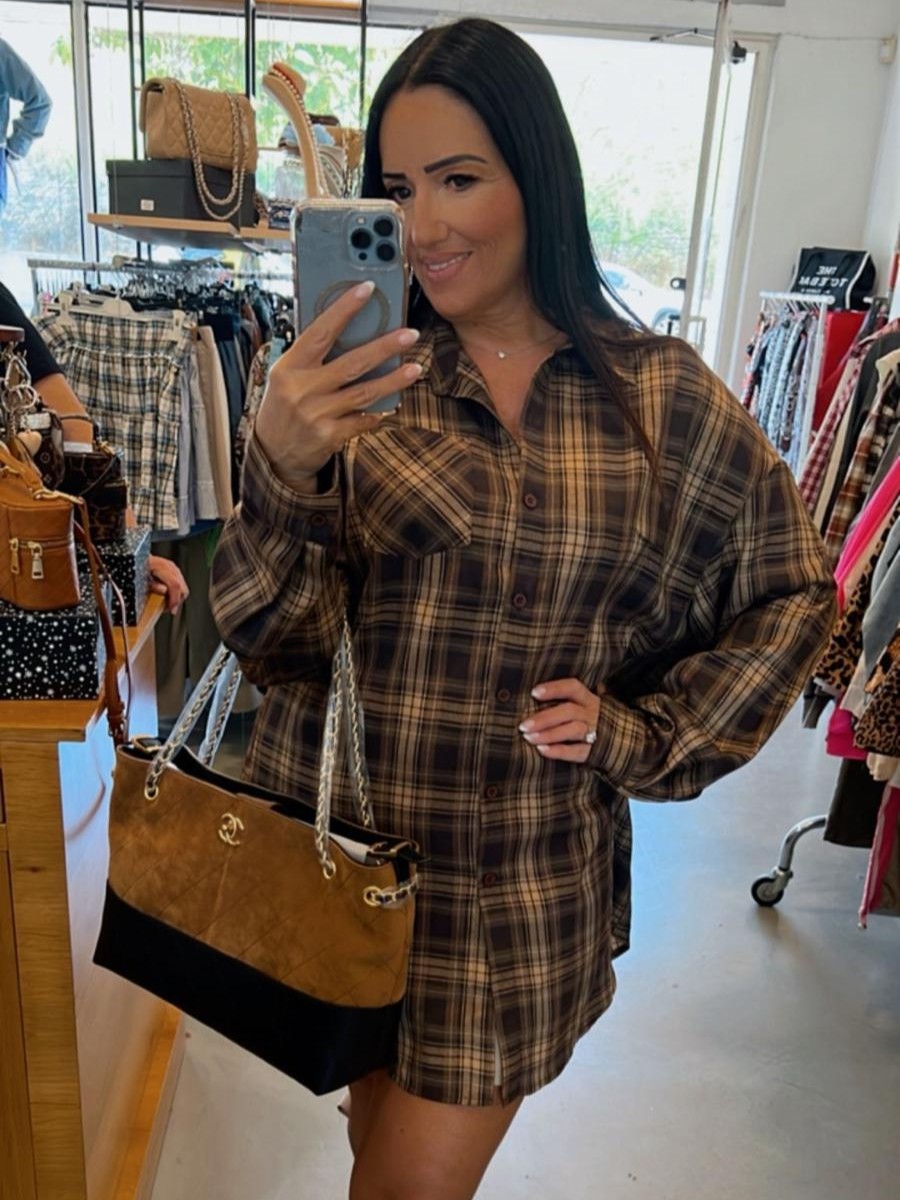 מכופתרת משבצות חומה