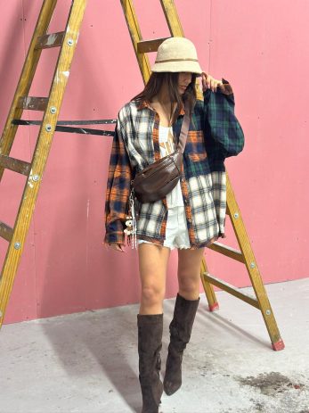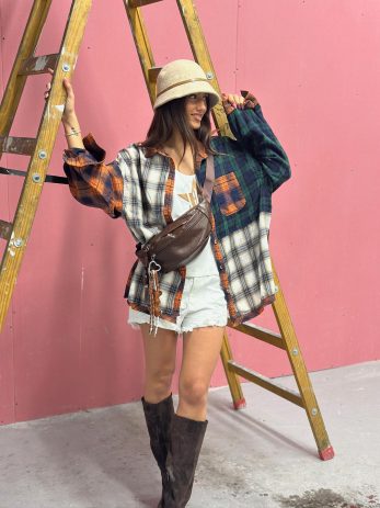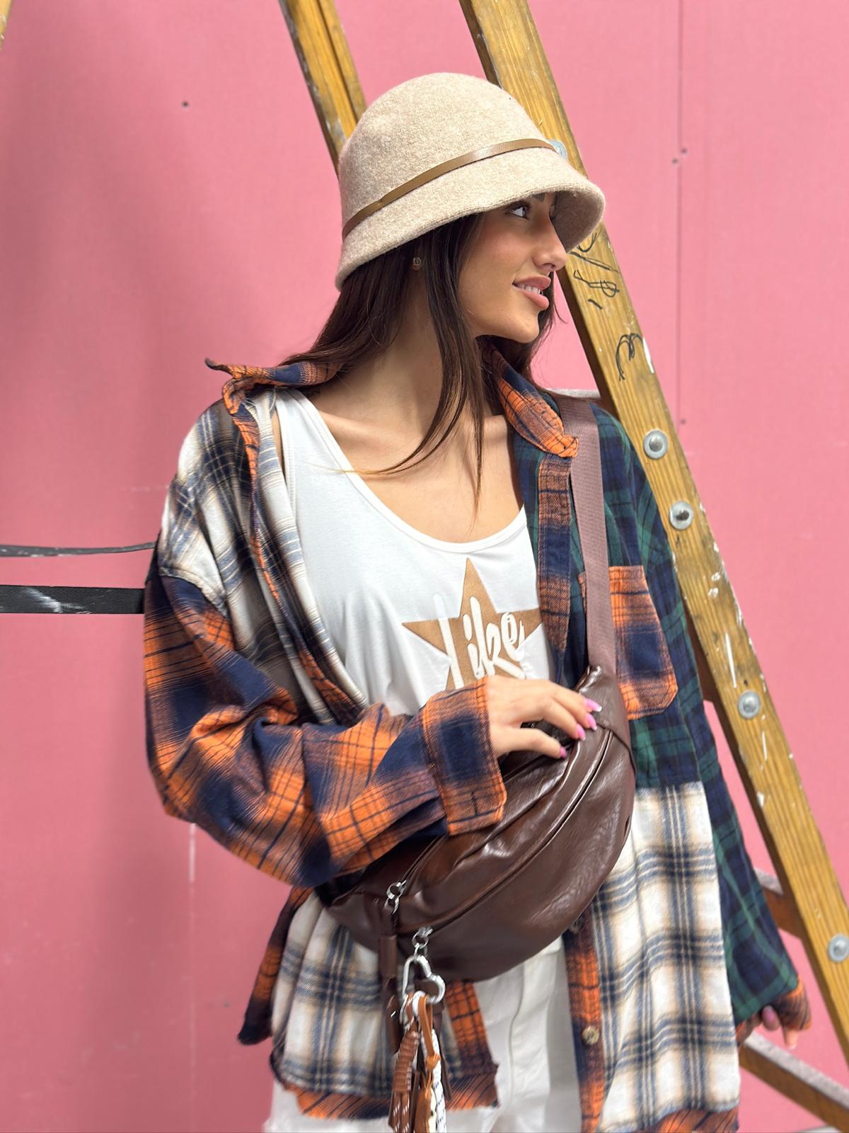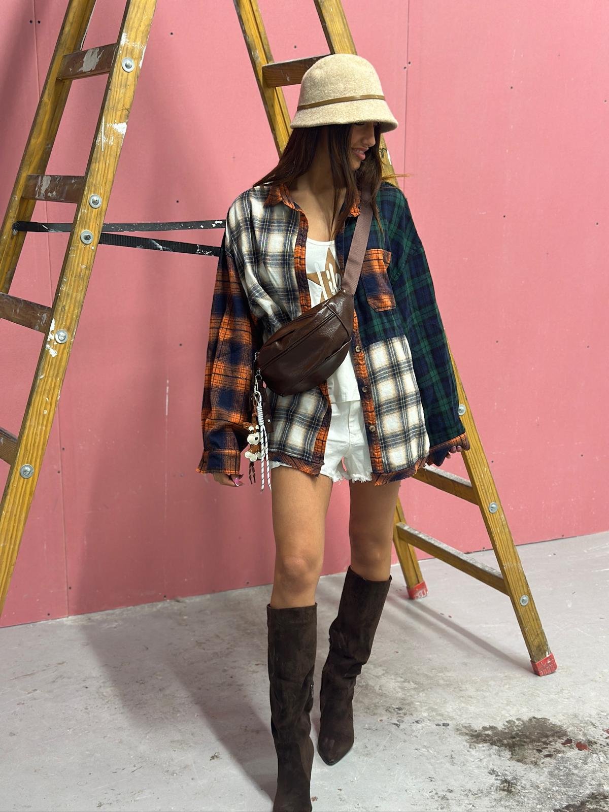 מכופתרת משבצות מיוחדת משולבת בדים שונים