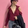 חולצה מכופתרת עם צאוורון ופתחים בידיים