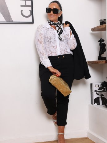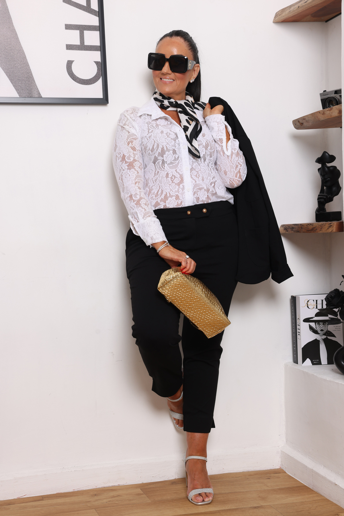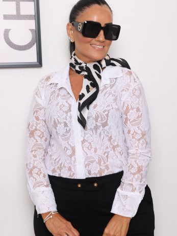 חולצה מכופתרת אלגנטית, מבד תחרה עדינה