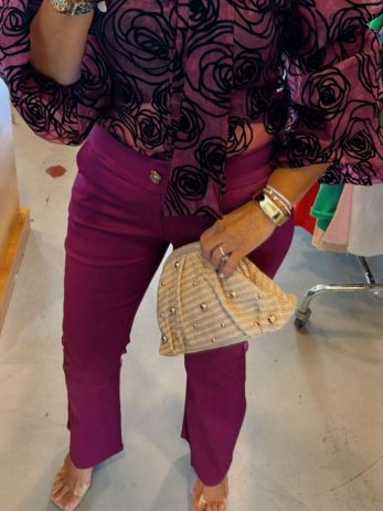 המכנסיים משולבים כפתור מקדימה. מידות נשים טובות ונכונות 36-46