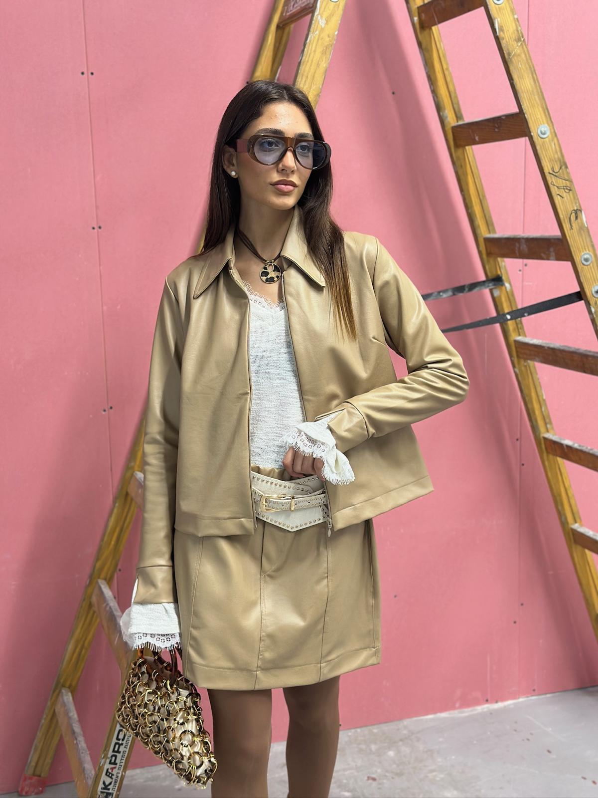 חגורת ניטים דמוי עור בצבע שמנת בסגירת אבזם מקדימה