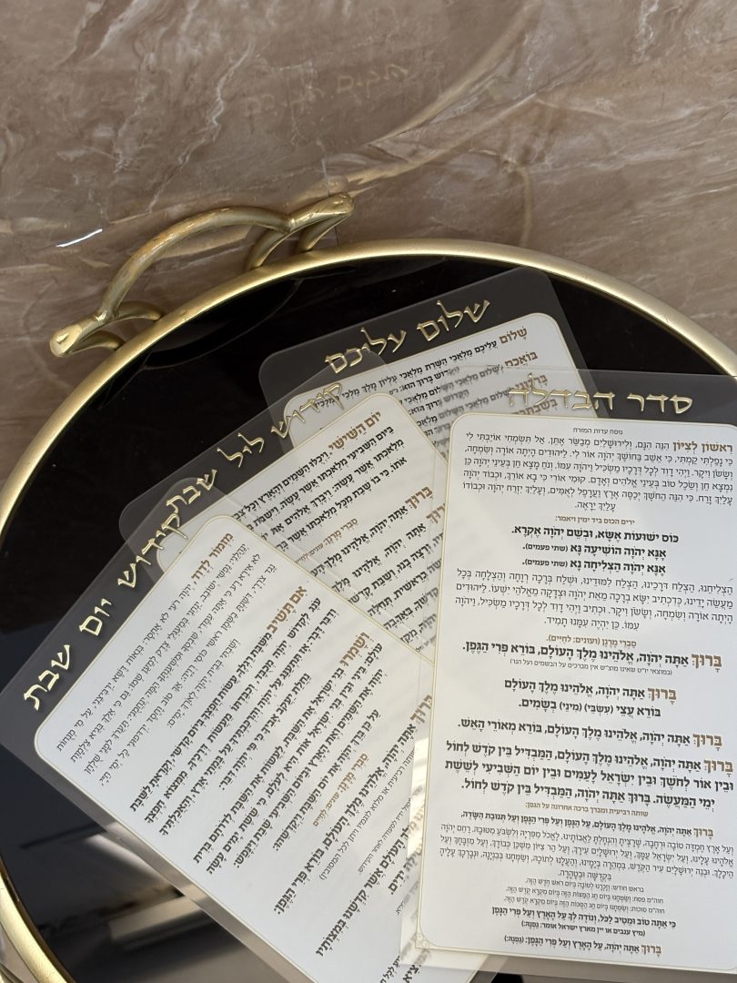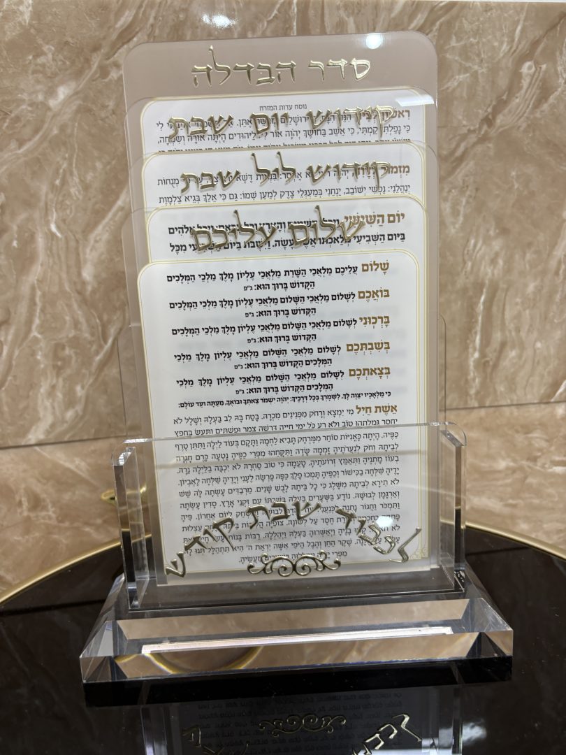 מעמד פרספקס לברכונים נוסח ספרדי 21X16 ס"מ עם 4 ברכות לשבת- זהב.