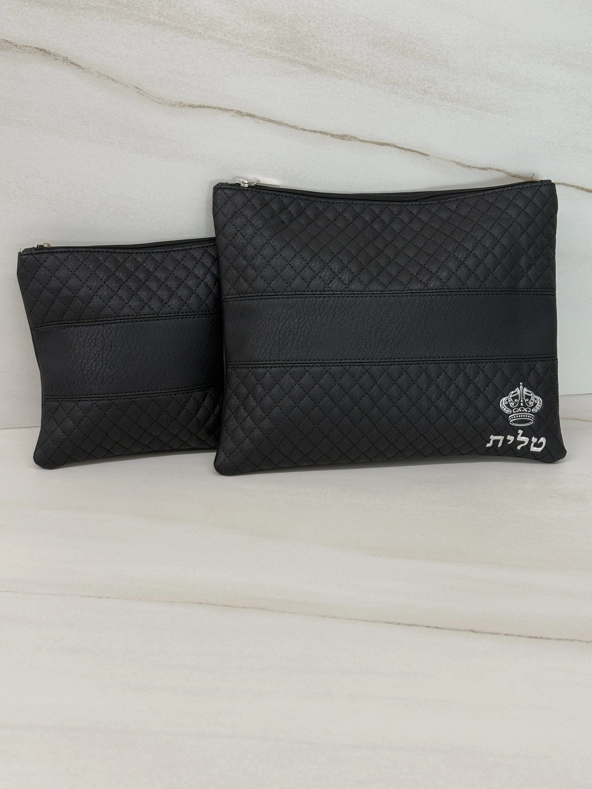 סט טלית תפילין דמוי עור שחור אותיות בולטות "כתר״