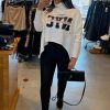 סריג גולף בגזרה מיוחדת בהדפס טקסט מקדימה
