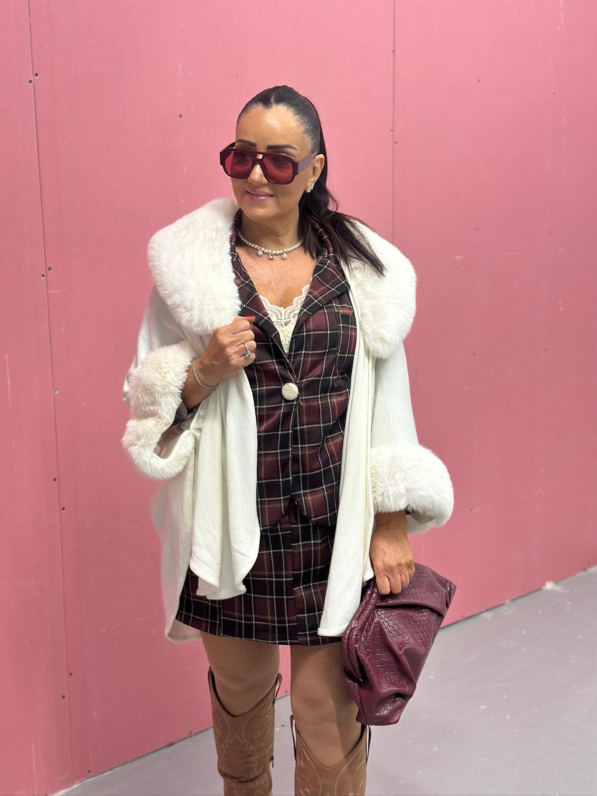 פונצו משולב פרווה בצאוורון ובשרוולים, את הפרווה בצאוורון ניתן להוציא ולהחזיר.