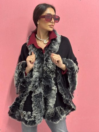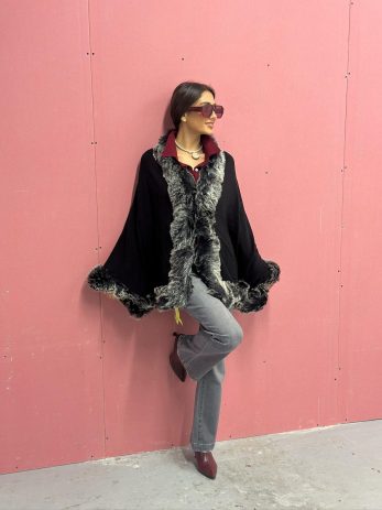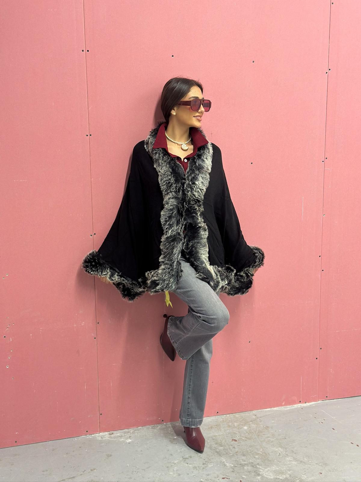 פונצו שחור שילוב פרווה