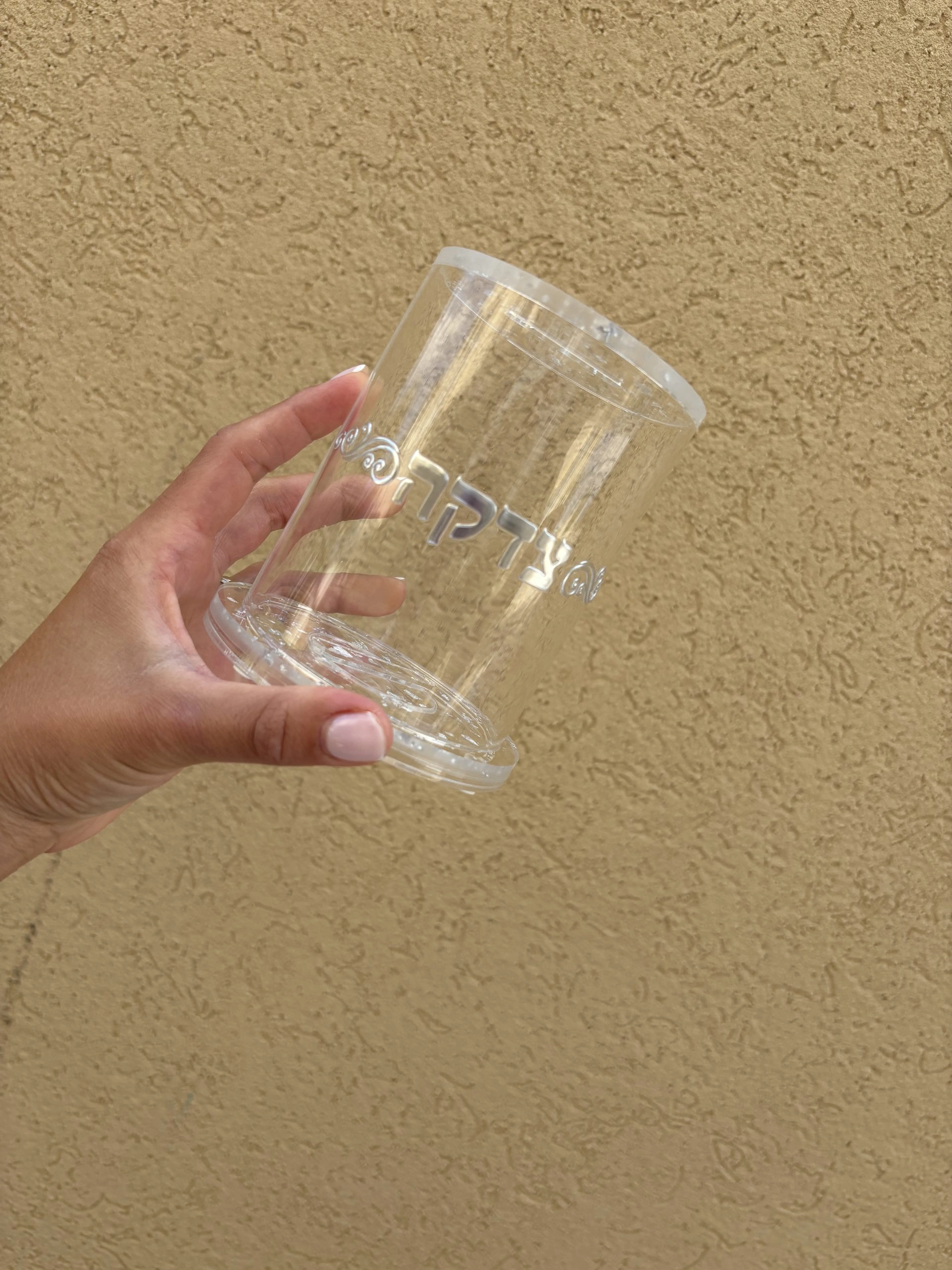 קופת צדקה פרספקס עם הדפסה – נצנצים כסף 13 ס"מ
