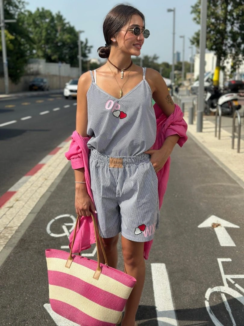 חצאית נויה היא חלקה מסדרת פריטי MIX&MATCE הכוללת חצאית, גופייה, חולצה ומכנסיים קצרים. המכנסייים עם גומי במותן