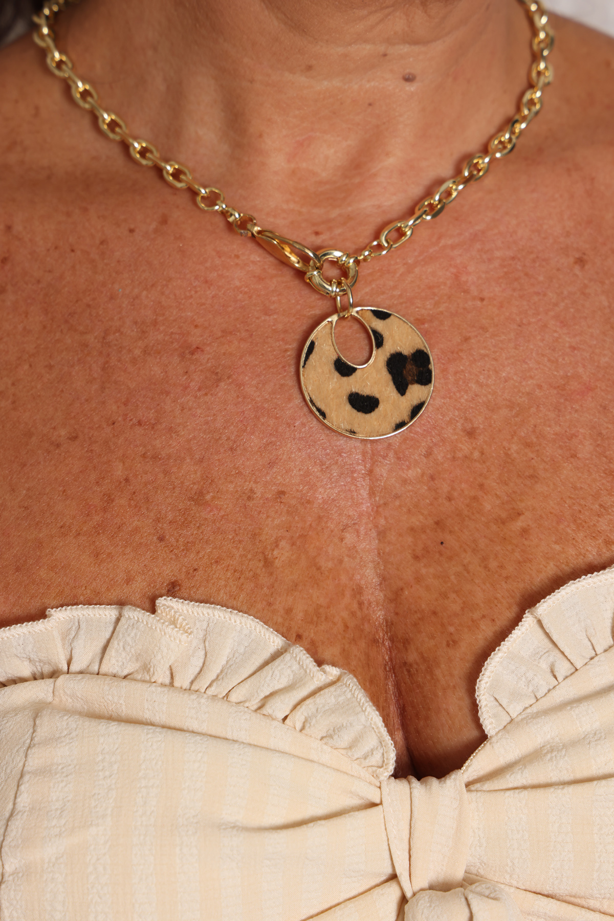 שרשרת מוזהבת משולבת תליון מנומר