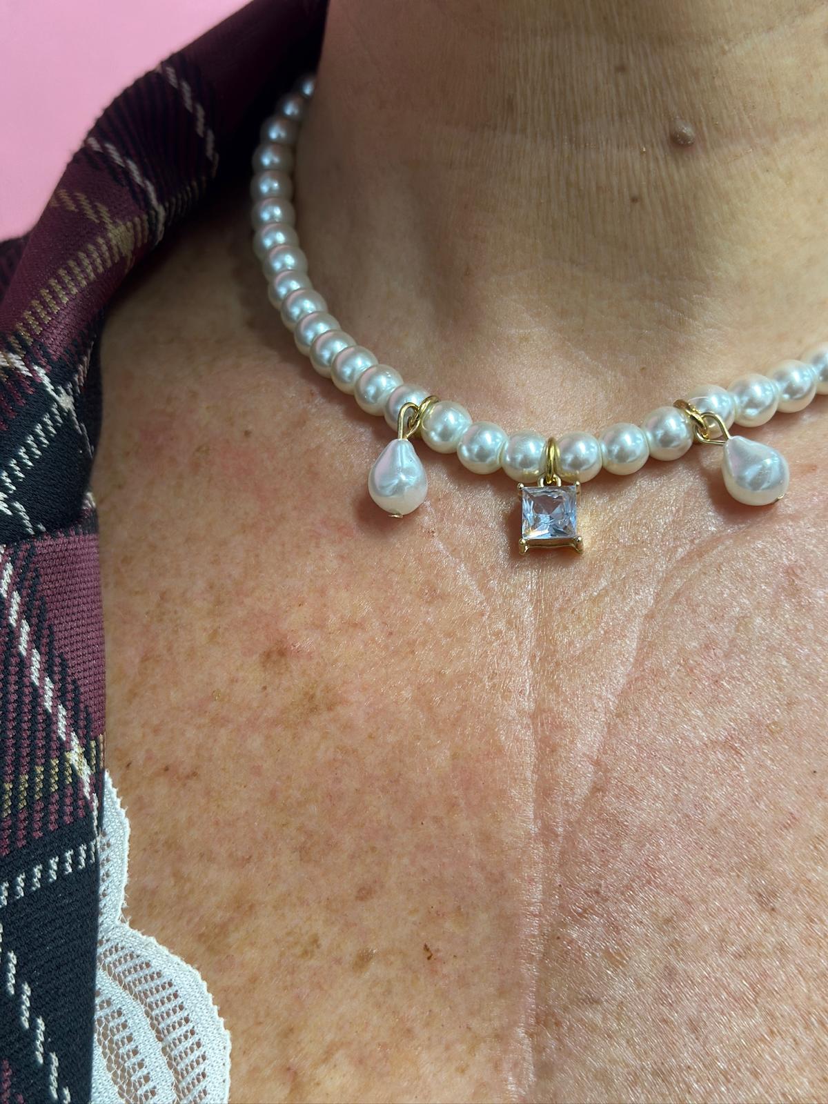 שרשרת פנינים קלאסית משולבת 3 תליונים