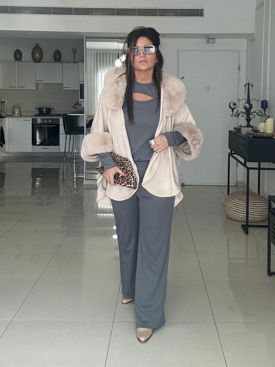 עם החליפה שילבתי פונצ'ו ותיק מנומר